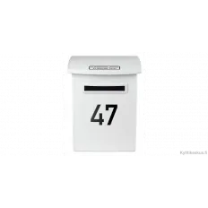 Muovinen postilaatikon nimikilpi omilla mitoilla. Valitse myös väritys, fontti ja kiinnitystapa.